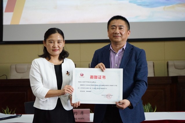 校教育發展基金會辦公室主任董雪靜老師代表學校與工電8164班校友代表王連偉共同簽署捐贈協議,董老師向校友代表頒發了捐贈證書。校黨委副書記、副校長李曉軍發表講話,她結合學校黨代會的召開和六十五周年校慶活動的舉辦向大家介紹了學校整體的發展情況,對工電8164班心系母校發展、關心青年成長的善舉表示感謝。她指出“自強不息 追求卓越”的電機精神來源于廣大校友的傳承與積淀,校友的成長與發展很好地印證了“技術立校、應用為本”的辦學方略。她要求青年學生要向工電8164班校友們學習,學他們的不忘初心與堅持努力,在繼承和發揚電機精神的基礎上努力成長成為卓越的高等技術應用型人才,以后也能感恩母校培養,通過各種方式支持學校教育事業的發展。
