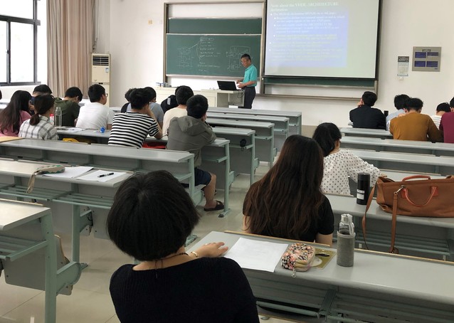 7月2日上午,海外名師美國普渡大學Yu教授的公開觀摩課《Digital Application》在教學樓B樓103進行,自動化系教師丁云飛、王海群、張向鋒、周琴、劉永慧、王芳等進行了觀摩學習。上課過程中,Yu教授采用多媒體技術進行授課,對上節課內容進行了回顧;在教學過程中,采用動畫演示的教學法,重點突出,層次分明,課堂效率高。