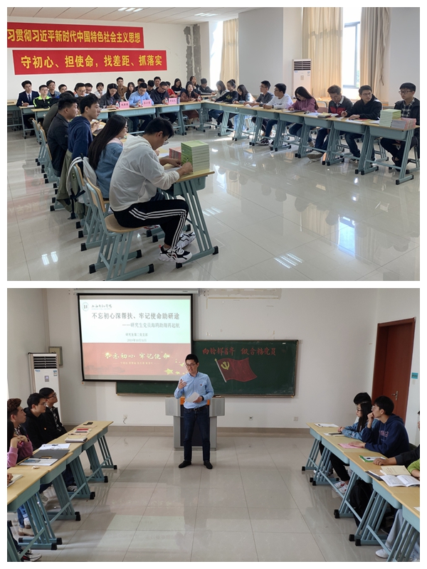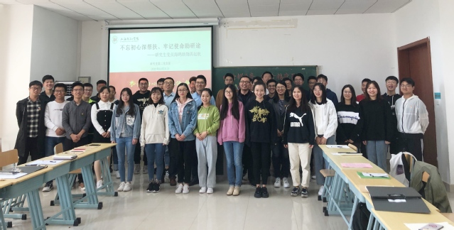 本次活動以四位黨員同志朗誦的一首激情澎湃的詩歌《紅船,從南湖起航》開場,帶領大家共同回顧了我們黨建黨初期的開拓者們是如何踐行不忘初心、牢記使命的;隨后由研究生黨員代表向全體黨員發出了倡議:學習榜樣,學習以黃文秀同志為代表的的一大批優秀共產黨員的先進事跡,做好研究生黨員的科研學術,幫扶身邊學弟學妹的考研路,爭做新時代有理想、有追求、有目標、有擔當的優秀研究生;接下來由三位研究生黨員從不同的角度向在場考研同學分享了考研經歷,并把最真誠的祝愿送給考研同學,預祝他們能取得好的成績;在結對贈書環節,18位研究生黨員和18位本科生考研同學一一結對并贈送書籍,在接下來的一年里,他們將通過不間斷的答疑解惑建立起研途友誼;考研學生代表在發言中表示研究生黨員們提供的及時的幫扶對接下來復習有很好的指導作用,同時表達了對學院黨委這種好的激勵幫扶政策的感激之情,并表示接下來一定認真復習,爭取考研成功!