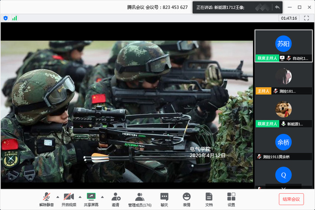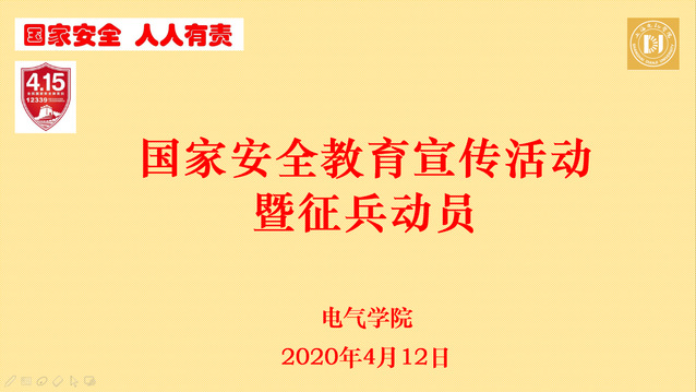 今年4月15日是第5個全民國家安全教育日,今年的活動主題為“堅持總體國家安全觀,統籌傳統安全和非傳統安全,為決勝全面建成小康社會提供堅強保障”。電氣學院于4月12日利用線上平臺邀請退伍學生為學院學生開展了一堂生動的國防安全教育課,一方面給同學們帶來了身臨其境的軍旅安全教育,另一方面也是一次很好的征兵動員。電氣學院黨委副書記、副院長卿海龍老師應邀出席,電氣學院輔導員代表、5位退伍學生以及各班級學生代表共計170余人參加了本次活動。