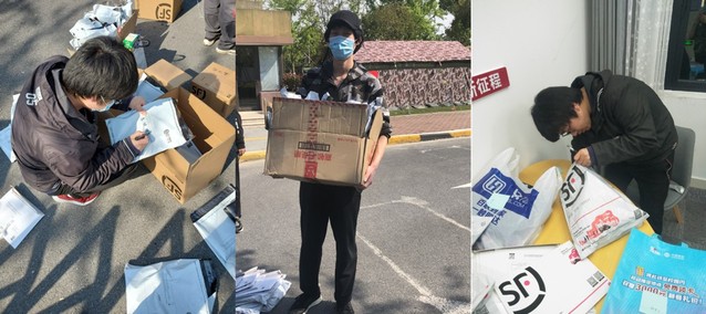 進入四月中下旬以來,大三和大四同學考研、就業等相關寄送需求越來越大。學院黨委副書記副院長卿海龍了解到這一情況后發現:輔導員和留校學生零星“接單”效率太低,學生們有時候剛到宿舍,新的訂單又來了。卿海龍召集輔導員協商解決辦法,最終決定從“零星接單“改為“統一接單”,統一由輔導員收集研究生、本科大三大四同學的寄送需求上報學校審批,志愿者劃分負責區域,根據寄送需求在宿管阿姨的帶領下分批次進宿舍“上門取件”,再統一郵寄快遞至全國各地。近一個星期以來,老師們登記了解好每一名學生的需求,志愿者們則已經為急需學習用品的同學寄去多份物品。