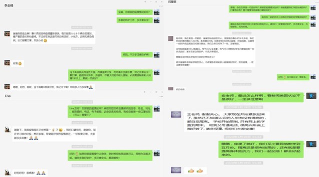 為向海外師生傳遞防疫信息和正能量,學院積極與海外合作院校保持密切聯系,通過視頻連線、郵件、微信、慰問函等途徑,及時與海外師生分享科學防疫信息和疫情防控經驗,協調和回應海外師生關切的簽證、學業等問題,關心師生身心健康,與他們一起加油打氣,堅定戰勝疫情的信心。