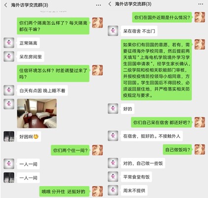 目前,電氣學院有9名訪學師生、10余名海外實踐基地師生及海外名師在海外。為暢通與海外師生的聯系通道,學院疫情防控工作小組緊急摸排相關情況,第一時間建立并落實“一對一聯系”方案,不分時差與海外師生保持動態聯系,持續關注海外師生的身體健康狀況,提醒他們做好個人防護。
