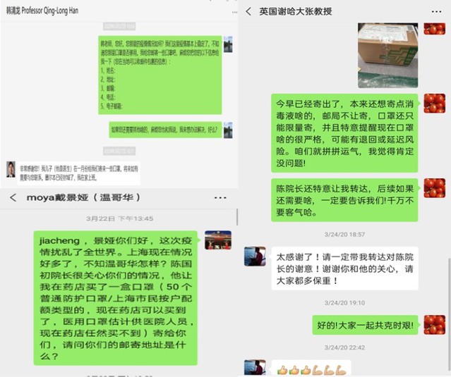 在得知部分海外師生口罩物資缺乏后,學院緊急籌措了口罩等防疫物資,于3月陸續郵寄給在美國、加拿大、英國、德國、奧地利等國家的師生,近日師生們已陸續收到物資。