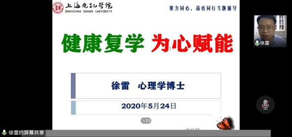 5月24日晚,來自電氣學院心理協會成員、班級心理委員、宿舍心理觀察員,以及各班代表齊聚騰訊會議云端,聆聽徐雷老師以“健康復學,為心賦能”為主題的心理輔導。