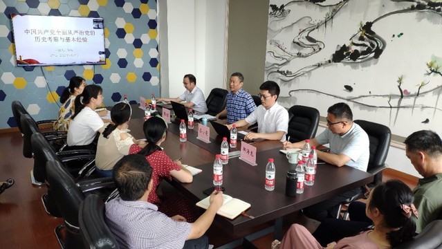 第五黨支部的學生黨員景召暉在支部會議的討論中加強黨的建設是每一位黨員的責任和義務,作為學生黨員,應該做到維護學術的公平性和誠信,應該嚴格地自我管理,同時在面對一些原則性問題時也要學會辨別黑白,堅決不能碰觸規章制度的底線。學院主管教學工作的負責人、第一黨支部書記李夢達談到“通過聽陳書記的報告,使我更加深入的了解到從嚴治黨的必要性,全面從嚴治黨的緊迫性,在今后的工作中更加嚴格要求自己,在工作中切實體現黨的純潔性和先進性”。第二黨支部書記朱晨烜也表示,立足教師崗位,只有做到律己才能教育學生自律,廉潔從教是為師之道,作為一名人民教師,堅決不能碰觸“六禁令”和“ 紅七條”,為人師表方能育棟梁之才。(馮雯雯)