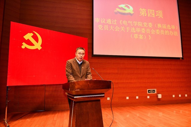 出席會議的全體黨員,以高度的責任感、主人翁的態度,認真聽取劉俊同志所做的黨委工作報告。經過充分民主審議,全體黨員一致通過了上屆黨委工作報告。隨后,受大會委托,馮雯雯同志向大會作《電氣學院黨委關于黨費收繳、使用和管理的工作報告》,卿海龍同志宣讀《電氣學院黨委(換屆選舉)黨員大會關于選舉委員會委員的辦法(草案)》,劉俊同志宣讀校黨委同意下屆委員會委員候選人預備人選的批復,分別經大會審議通過。