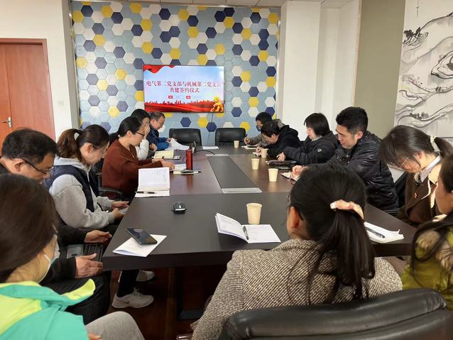 為加強基層黨組織建設,進一步推進黨建工作與業務工作的深度融合,發揮黨組織的凝聚力和戰斗力,形成互帶互動、優勢互補、共同發展的基層黨建新格局。3月8日上午,正值三八婦女節,電氣學院第二黨支部書記朱晨烜與機械學院第二黨支部書記孫群帶領兩個支部的教師黨員齊聚電氣樓401室,共謀黨建促進黨的教育事業發展之大計。會議由電氣學院第二黨支部書記朱晨烜主持,雙方支部共16名同志參加了簽約儀式。
