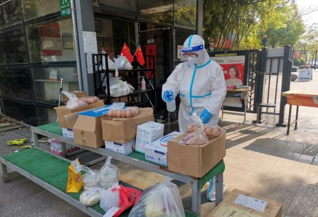“我雖然不是黨員,但這關鍵時刻也要跟黨員們一樣沖鋒在前”。實驗室主任陳梅平時就是一位熱心的老師,她在社區是抗原檢測試劑的分發員,是生活物資團購的團長,是小區快遞的分揀工……