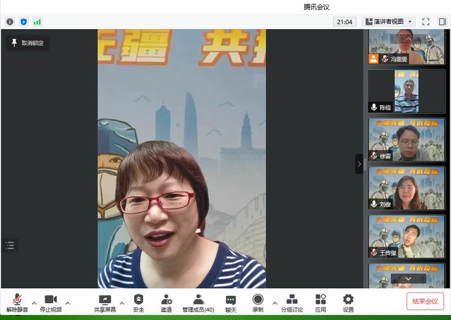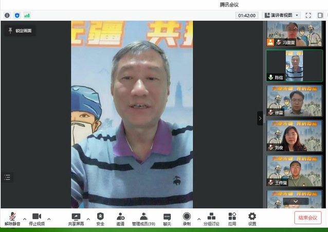 視頻連線中,各黨支部書記依次介紹了本單位在防疫斗爭中所做的工作,面對本次來勢兇猛的新冠疫情,各黨支部聞令而動、落實黨員雙報到工作,各黨員將疫情防控作為當前重大政治任務來抓,不畏艱難、攻克艱難。學生工作辦公室主任岳寧、實驗室主任陳梅、教師黨員王芳、李建國、謝源,輔導員徐雷、王海明,學生黨員朱婷婷、陳嘉琰、周顯利等社區志愿者代表介紹了具體負責的社區疫情防控工作情況,在疫情發生后,他們毅然投身到防疫一線,從抗原試劑發放、關愛老年人、快遞分揀分發、生活物資卸運、配合核酸檢測秩序、疫情心理疏導與關愛、生活物資團購等志愿服務工作的心得和體會。在校內的學生志愿者王傳璽、教師志愿者徐威、輔導員苗雨婷、工作專班代表陳國初等分享了在校各項工作任務的總體狀況和所感所獲。
