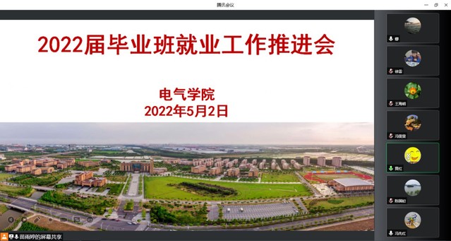 為貫徹落實市教委就業工作專項行動通知要求,及時有效推進學院畢業生就業工作,幫助畢業生實現高質量就業,5月2日晚,電氣學院通過騰訊會議召開2022屆畢業班就業工作推進會,學院有關領導及相關輔導員班主任參會。
