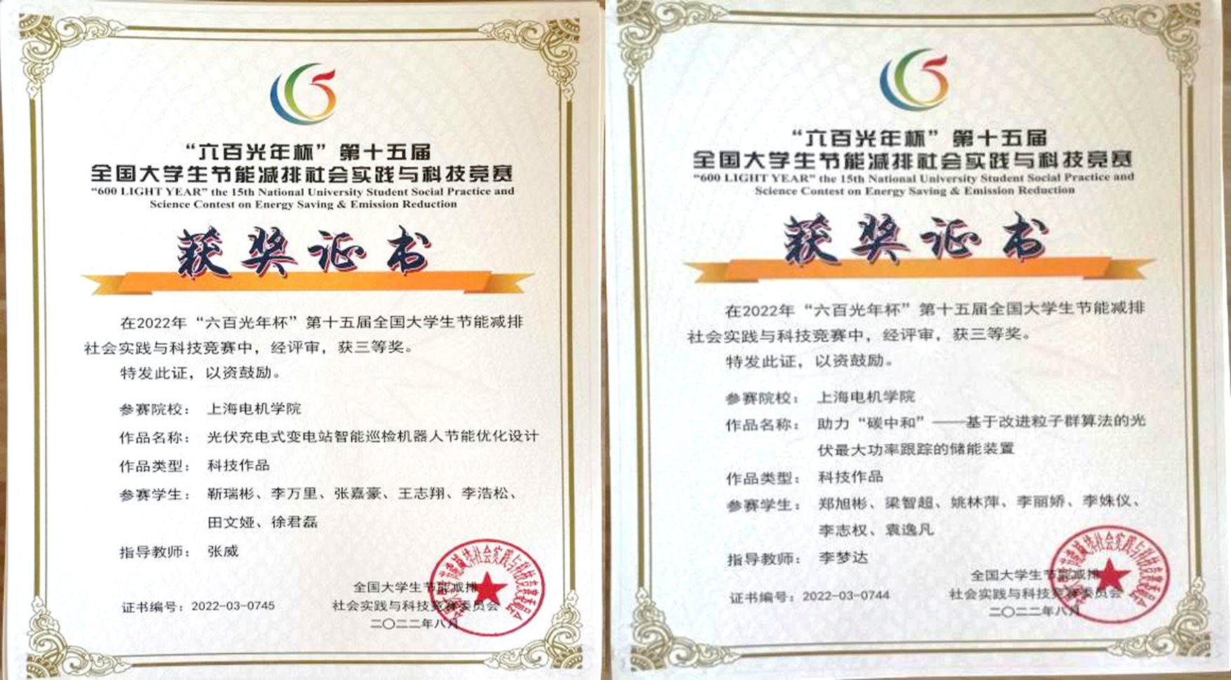 近日,2022年“六百光年杯”第十五屆全國大學生節能減排社會實踐與科技競賽結果公布,我校學子完成的兩個作品榮獲國家三等獎。