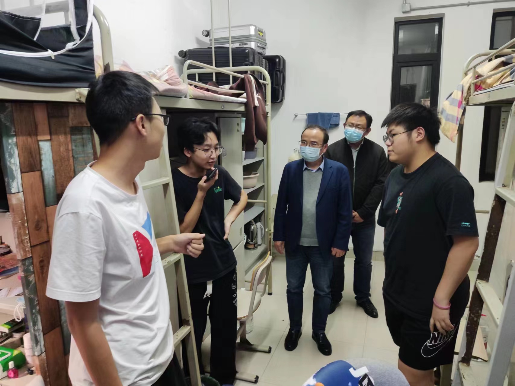 關心關愛學生有溫度,做學生的知心人。近日,電氣學院全體黨政班子帶領輔導員深入學生宿舍,叮囑同學們嚴格遵守學校疫情防控相關規定,詳細詢問了同學們在課程學習、考研升學、求職就業、校園生活等方面的情況,對學生關心的問題作了認真解答。針對不同年級提出不同的學習、生活建議。走訪過程中,學院院長陳國初細心詢問新生來校后的生活和適應情況,了解大家的家鄉和高考情況,輕松的話語迅速拉近了彼此間的距離。陳國初反復強調身體是學習的前提,引導學生“自己是健康第一責任人”,鼓勵同學們加強體育鍛煉,積極參加相關活動,提高綜合素質,共同學習進步,努力成為對學院、對社會和對國家有貢獻的人才。黨委書記劉俊在和畢業班學生交流時期望學生:樹立正確的就業觀,在了解到不少同學報考我校研究生時,劉俊鼓勵同學們認真復習,爭取繼續在我校攻讀研究生,還鼓勵未就業的同學抓住秋招黃金期,多關注臨港就業單位和崗位,盡快找到滿意的工作,迎接更大的挑戰。