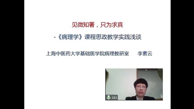 應邀參會的上海中醫藥大學基礎醫學院李素云老師圍繞探索《病理學》見微知著、只為求真的思政案例,通過講述“病理學家卞修武院士疫情期間赴武漢開展尸體解剖病理檢查的先進事跡”,引導同學們更深刻地理解了新時代中國共產黨人民觀的新境界--“人民至上、生命至上