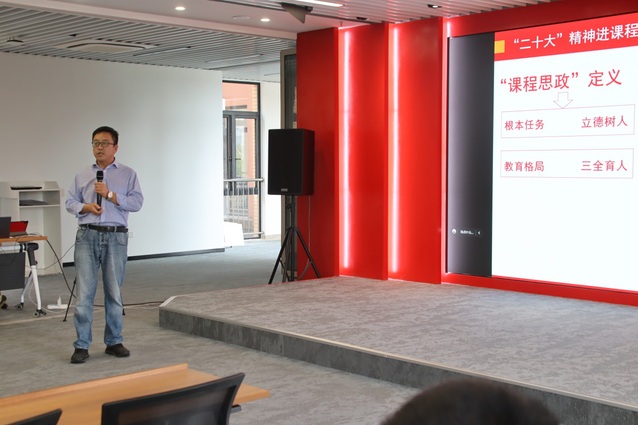 “我們大學老師也要學習勞模工匠精神,上好每一門課,打磨好每一堂課,自覺把二十大精神和勞模工匠精神融入課程思政;同時我們也要深入了解00后大學生的思想特點、心理特點,匠心逐夢,努力成為善任課程思政的‘愛學生、懂教學、有情懷’的大先生。在專業教師來曬課環節,來自校內外的專業課老師分享了他們學習二十大精神的感悟,以及如何通過巧妙的課程思政教學設計向學生傳遞,幫助他們更加深刻地理解二十大精神。