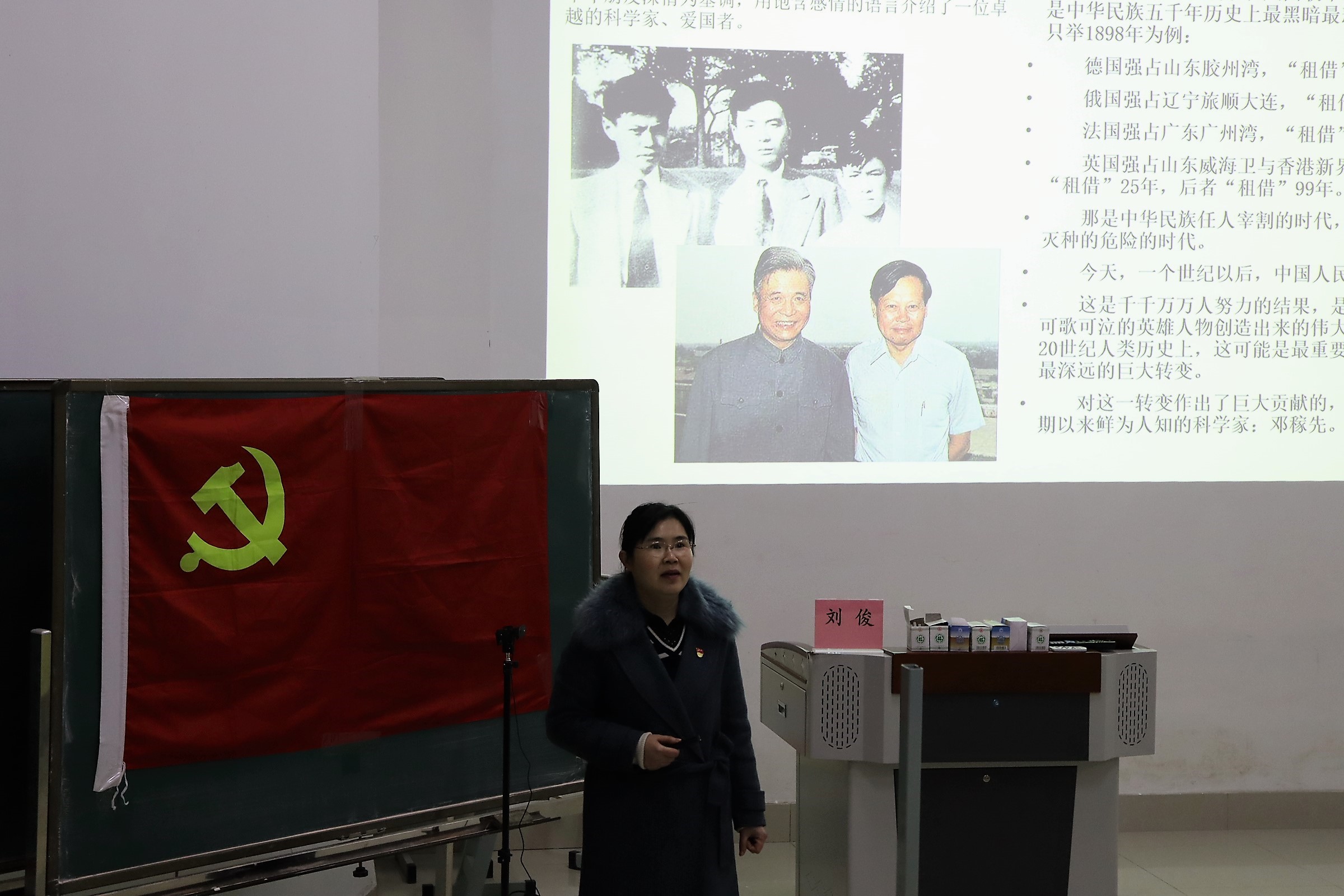 在本次黨課學習中,劉俊書記先以介紹中國原子彈之父鄧稼先的生平事跡為開頭,進而過渡到黨的發展歷程之中,通過闡述中國近代一系列的救亡圖存運動的失敗,證實了“只有把革命的領導權交給共產黨才是正確的”這一理論。在形形色色一百多個政黨中,唯有中國共產黨得到發展,說明了中國共產黨的領導是人民的選擇。