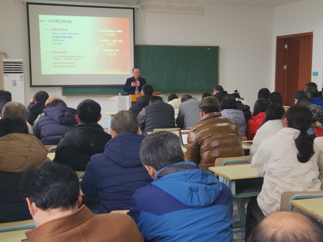 陳國初介紹了學院新進教師情況并作了《學習貫徹黨的二十大精神 有組織開展教學與科研 推進學院高質量發展》的專題報告,報告回顧了學院寒假期間工作開展情況和取得的成效,就學院建設與制度完善、師資隊伍與國際化、70周年校慶、科研與研究生工作、教學與學生工作等對2023年度工作進行了部署安排,并提出了要求。2023年是貫徹落實黨的二十大精神的“開局之年”、是深入推進“十四五”規劃的“奮進之年”、是學校慶祝建校70周年的“校慶之年”。陳國初表示在深入學習黨的二十大精神的基礎上,根據學院的“十四五”規劃,結合年度目標和任務,深化產教融合,提升人才培養質量;要繼續加強團隊建設,做有組織的教學與科研;全體教職工要立足崗位,心往一處想、勁往一處使,推進學院高質量發展。各條線負責人分別就近期的教學、科研和學生工作作了補充。