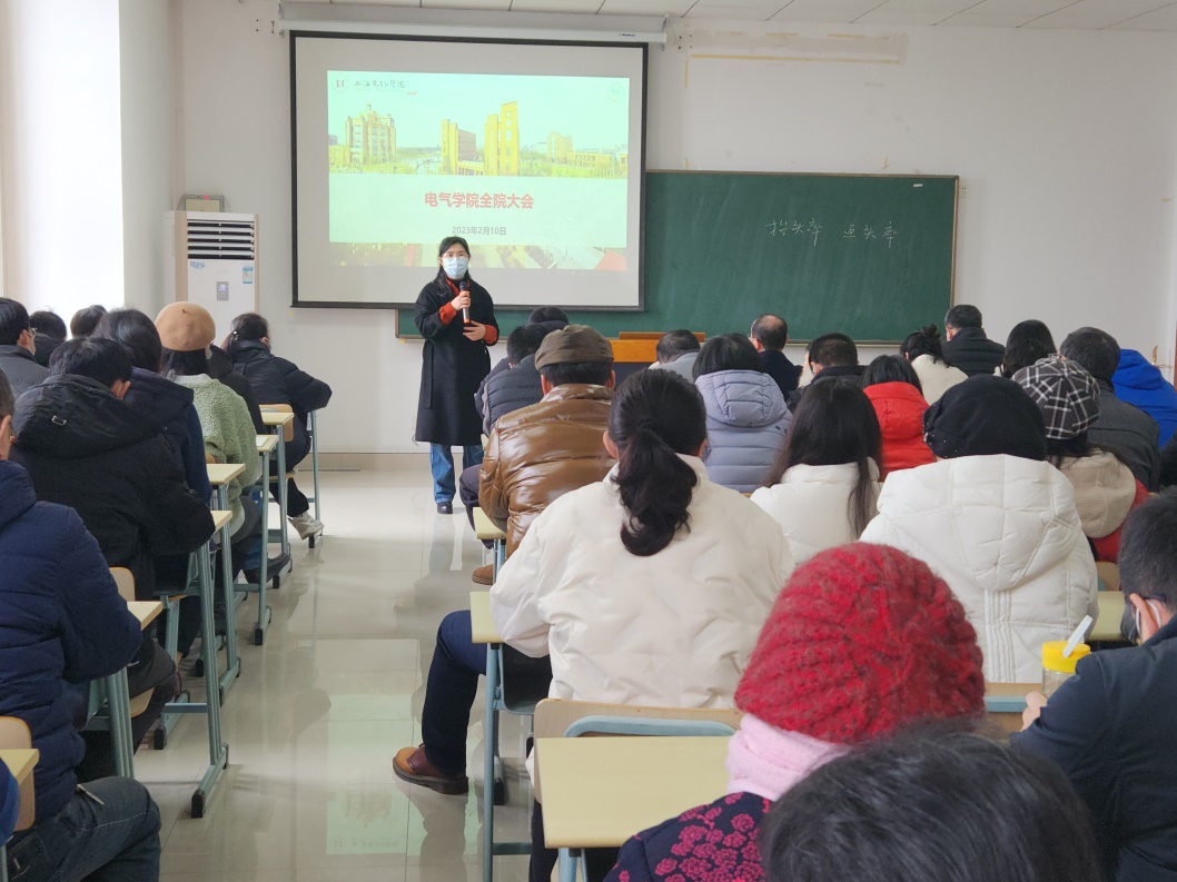 2月10日上午,電氣學院在電氣樓301召開2022-2023學年春季學期全院大會,專題學習了學校中層干部能力提升?人才培養專題研修班會議精神,學院黨政班子和全體教職員工參加了會議,會議由學院黨委書記劉俊主持。