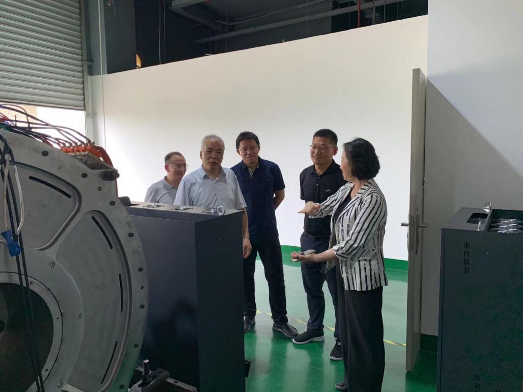 調研期間,龔思怡一行實地考察了研究院的展示廳、研發工作室、成品制作車間、產品測試平臺等,詳細了解研究院的運行與研發狀況。研究院目前在研的250kW低速大扭矩電機,額定轉矩高達10000牛米,可以實現重型設備的直接驅動,省去了常規的減速機構,極大提高了系統運行的效率和可靠性。