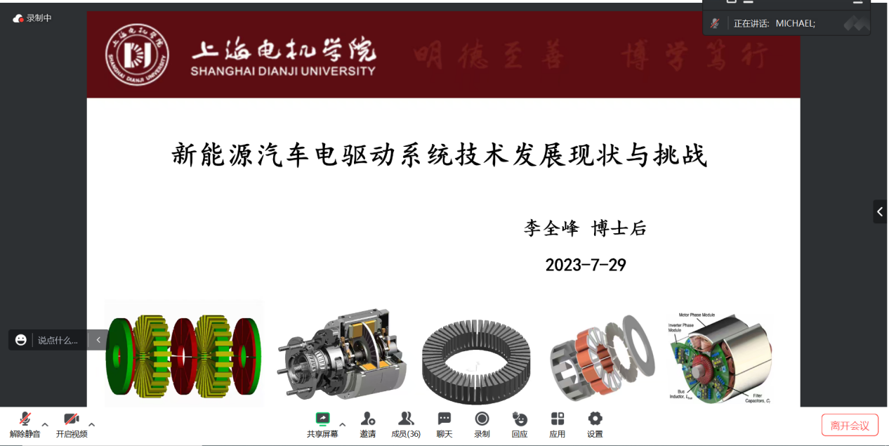 在“學科大咖云講座”環節,三位電氣學院的研究生導師為營員們帶來了精彩紛呈的專題講座。張延遲教授作了題為“新能源發電并網控制與檢測”的學術報告,重點闡述了國內新能源領域的發展現狀、風光火多源并網場景下復雜振蕩的機理研究等內容,還介紹了該課題組的研究生培養概況。多年來,該課題組的研究生在學科競賽和科技成果轉化等方面取得了優異成果。李保江老師介紹了智能決策與控制技術研究所概況,該團隊定位于機器人智能決策與控制領域,主要研究多源生物信號控制技術,多模態信息融合的腦機接口等技術,報告還介紹了該團隊的研究生培養情況,特別是在2023年已發表錄用SCI一區論文1篇,二區TOP論文多篇。李全峰老師以評論區互動的方式,別開生面地展開了題為“新能源汽車電驅動系統技術發展現狀與挑戰”的學術講座,部分營員在交流環節興奮表示將來要致力于新能源汽車驅動技術研究。