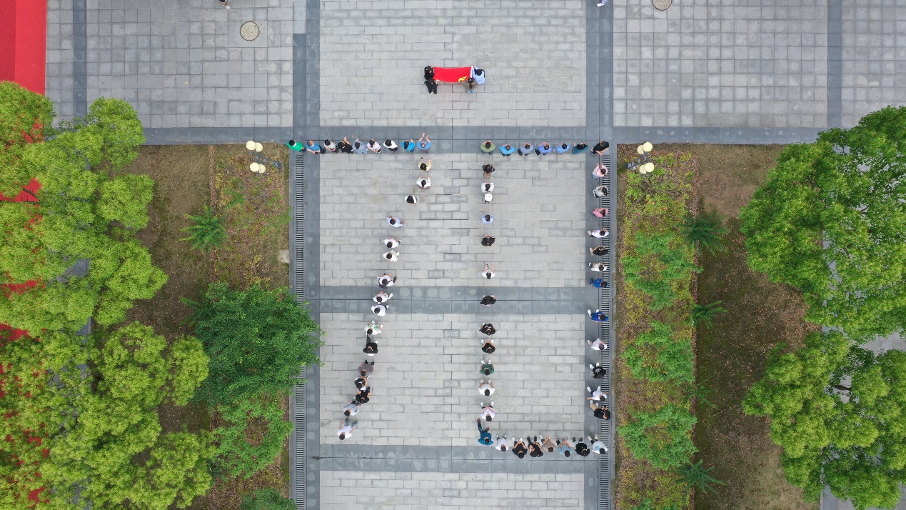 在機械、電氣學院樓前廣場,各黨支部黨員齊心協力擺成“70”造型,寓意著上海電機學院建校70周年與上海汽輪機廠建廠70周年。一首主題為“七十載攜手并進,產教融合譜新篇” 的朗誦,由此拉開了聯合主題黨日的帷幕。