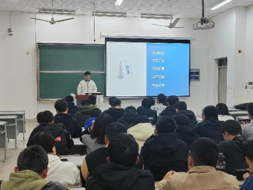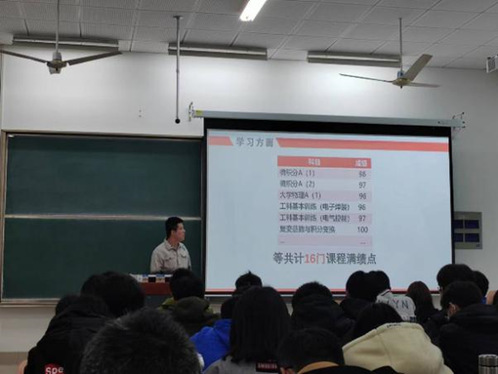 接著輪到電氣2114班的劉圣典同學分享,他以電氣學院學生會主席的身份,從思想政治、學生工作、科創競賽、公益貢獻以及學業成績幾個方面詳細呈現了自己的經驗。劉圣典靈活運用豐富的經歷,展示了如何在這些方面做到平衡與兼顧,展現了中國青年時代精神的典范。他向同學們提出了以學習為核心的觀點,強調了知識在大學生活中的至關重要性。劉圣典分享的過程既富有深意,又頗具幽默感,為廣大同學提供了積極向上的學習指引,鼓勵大家在知識的海洋中不斷提升自我,為自身成長打下堅實基礎。