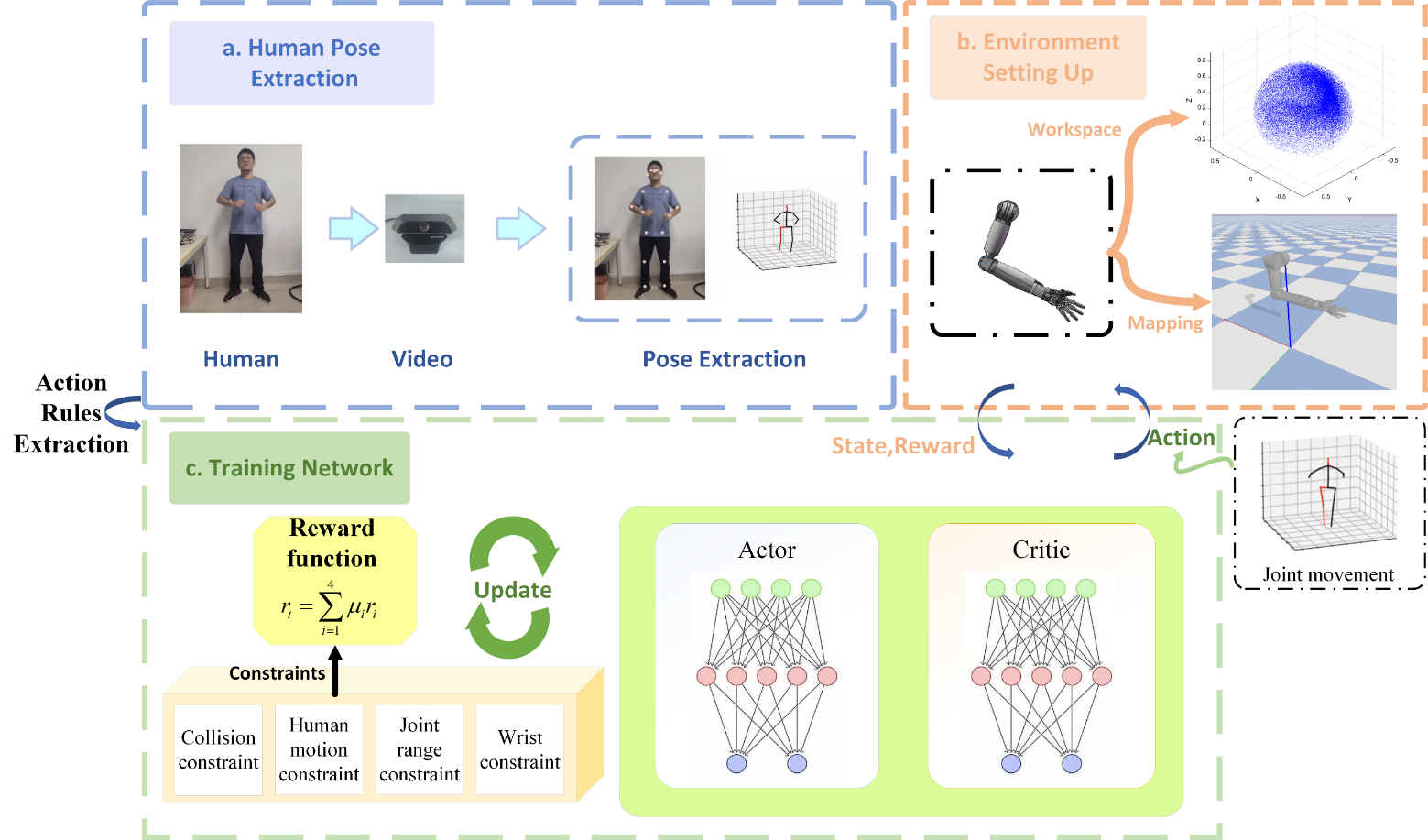 該算法從未標明的視頻中分析和學習人體手臂運動特征的三維姿勢,然后根據人體運動模式設計獎勵函數,并使用基于深度確定性策略梯度(DDPG)的強化學習算法來訓練仿生手臂的仿人運動。在仿真環境中通過多個任務評估了仿生手臂的有效性,結果表明該方法在規劃仿生手臂的仿人運動方面具有良好的性能,可廣泛應用于具身智能機器人控制領域。