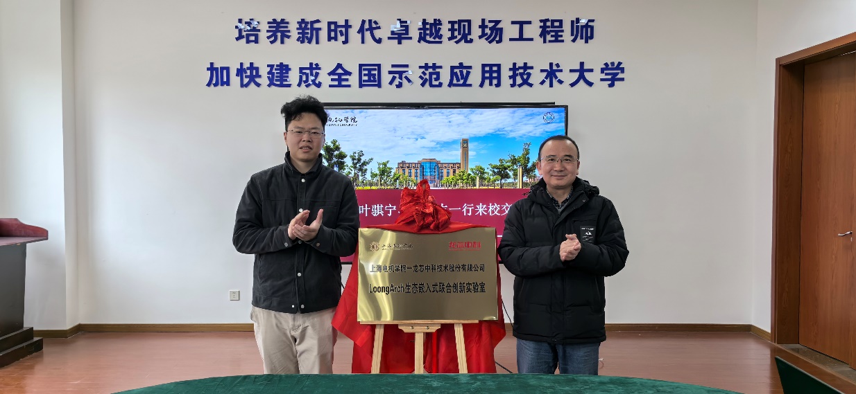 近日,電氣學院與龍芯中科技術股份有限公司(以下簡稱“龍芯中科”)簽訂LoongArch生態聯合創新實驗室-“龍牙計劃”合作協議,并捐贈價值50萬元的實驗室設備-龍芯教育版套裝,致力于合作培養具有創新技術的高素質技術技能人才,推動我國芯片技術的自主創新與產業升級。12月23日下午,龍芯中科生態平臺總監葉騏寧、技術支持工程師卞鴻志、上海電機學院對外聯絡處負責人卞一明、電氣學院黨委書記陳國初、電氣系教師左東升參與揭牌&捐贈儀式,電氣學院院長文傳博主持儀式。
