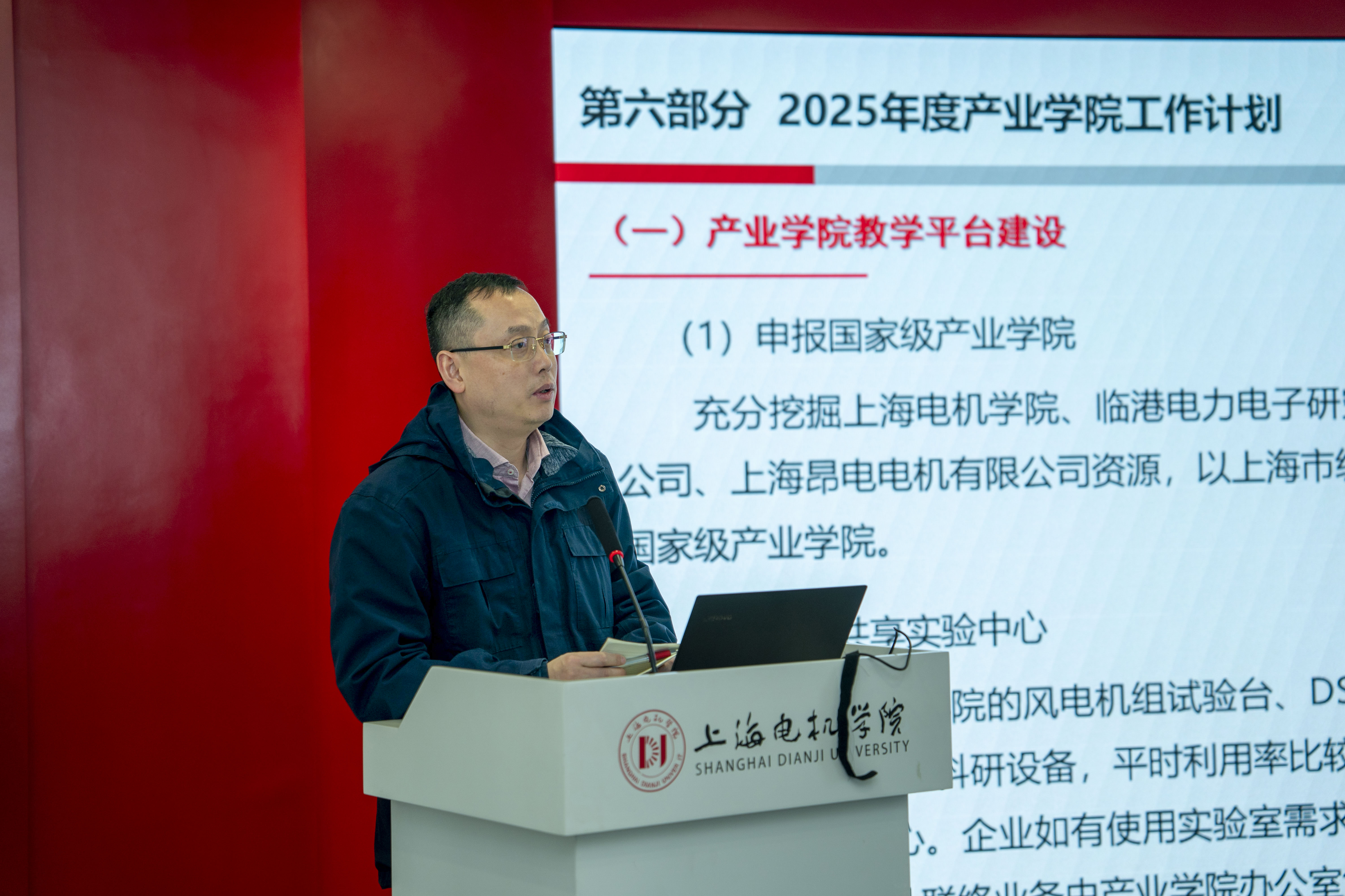 會議伊始,文傳博向參會企業領導、專家的到來表示歡迎。沈捷匯報了2024年度臨港電機產業學院工作總結及2025年度工作計劃。他表示,在過去一年里,產業學院圓滿完成了“雙高”計劃與應用型本科人才培養方案的制定工作,與企業開展深度合作,卓越班首次深入企業,并開展為期一個月的企業實訓。產業學院成功獲批上海市高壓電機數字化智能運維專業技術服務平臺,職業資格培訓項目也順利開展,多名學員取得西門子PLC、ANSYS職業資格培訓結業證書。學院還創辦了競賽技能創新訓練營、電機智能控制創新訓練營及自動識別創新訓練營,獲得多項上海市及國家級學科競賽獎。2025年臨港電機產業學院將并與理事企業攜手共建實驗中心、產教融合實踐基地,電機特色班等,進一步提升產業學院的辦學水平和人才培養質量。
