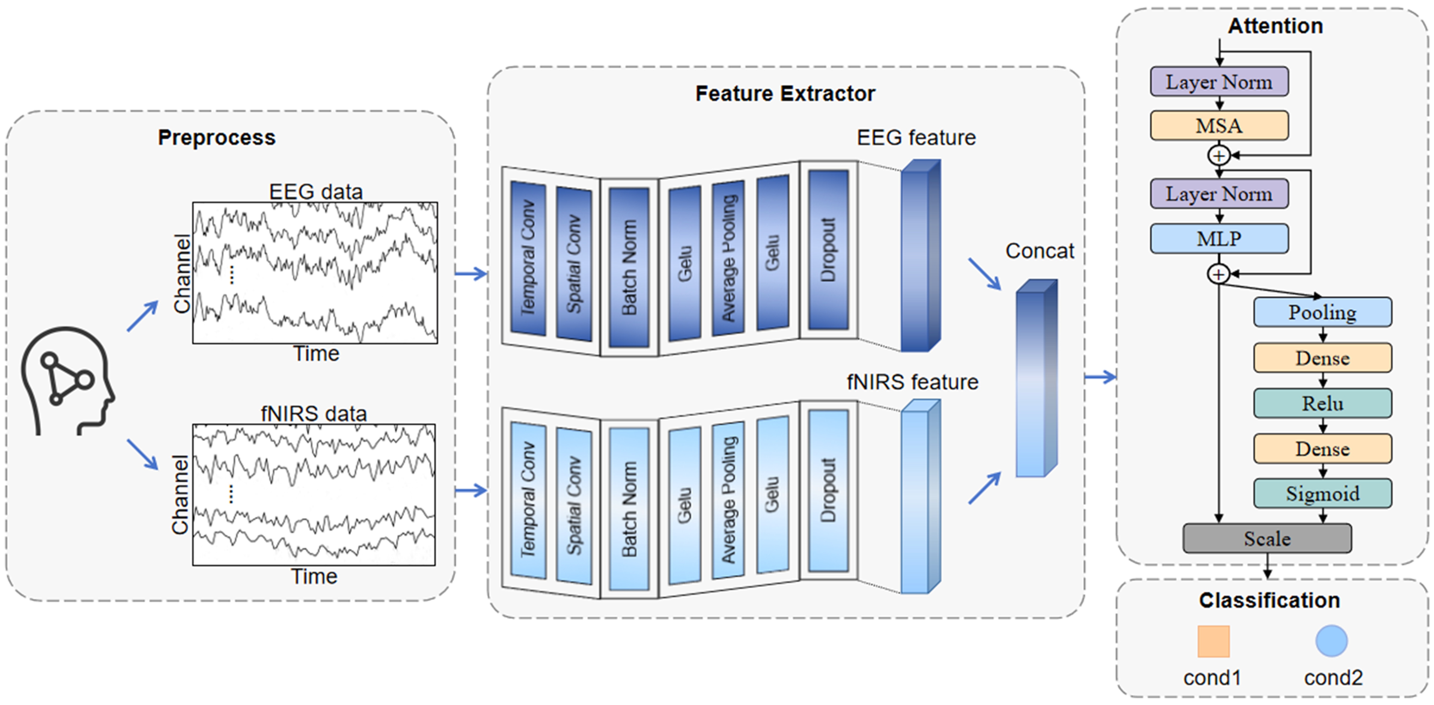 EEG和功能性近紅外光譜(fNIRS)信號融合可彌補單一模態的不足,全面反映大腦活動模式。然而兩者在物理本質、采樣頻率和噪聲特性上差異顯著,這給融合帶來挑戰。如何有效融合這兩種信號,保留各自優勢,是當前亟待解決的問題。