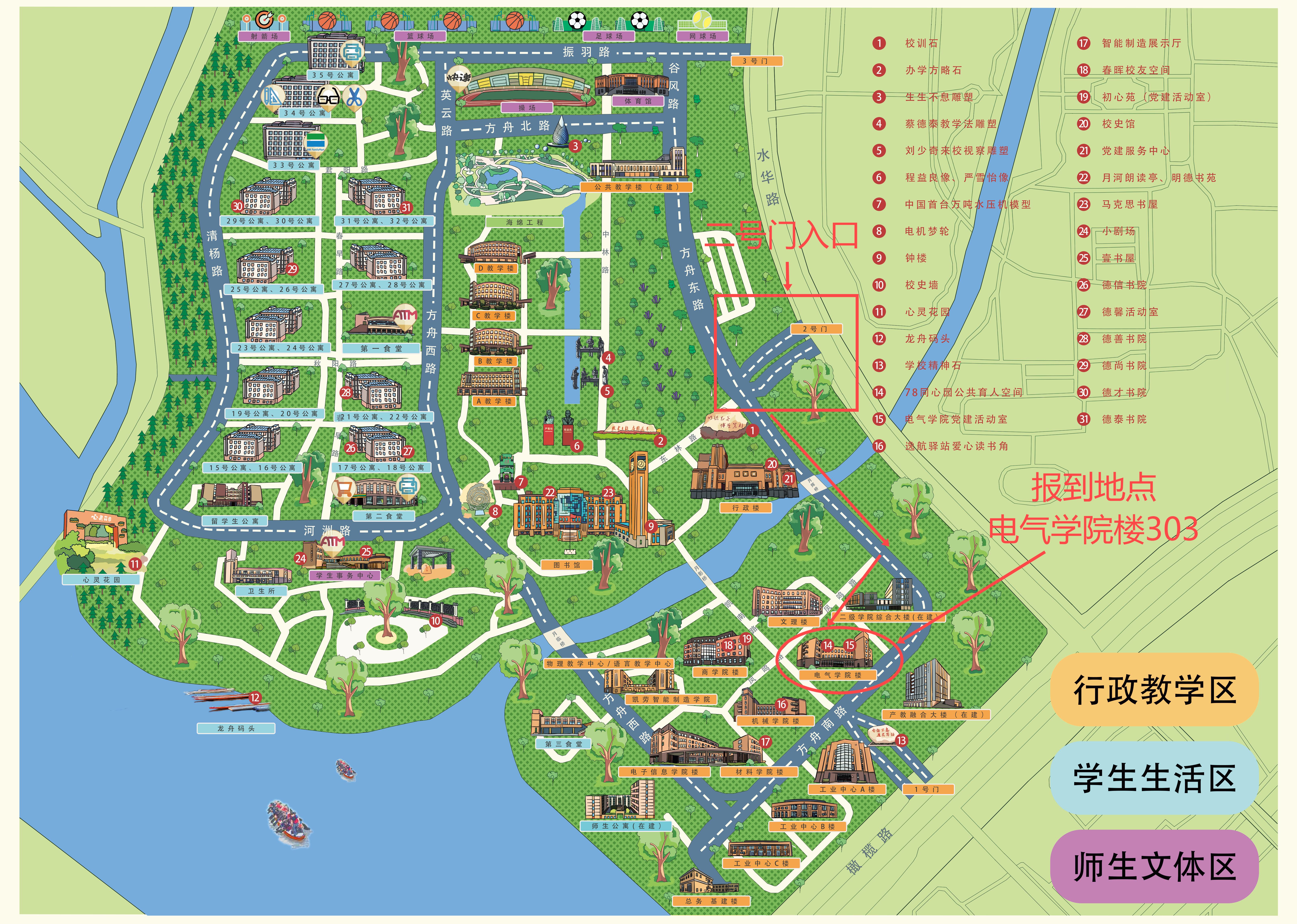 報到地點:上海電機學院臨港校區電氣樓301室(見學校地圖,附件1,附件5)。請依據教室門口張貼的分組名單,到對應的報到臺進行報到,報到時須交、驗以下材料: