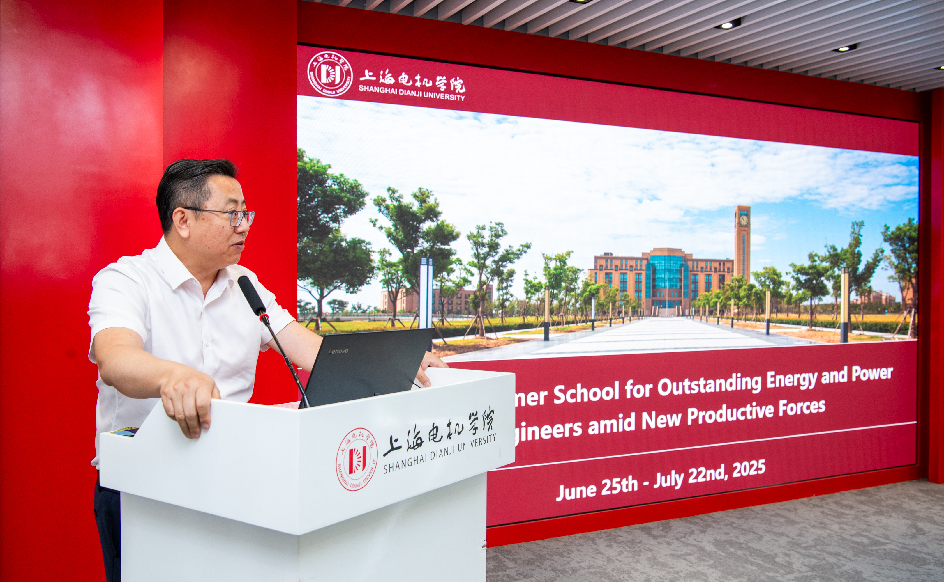 王宏志副校長在致辭中,對遠道而來的國際學生表示歡迎,并詳細介紹學校的基本情況與國際交流合作的豐碩成果。他強調,上海電機學院始終站在教育國際化的前沿,致力于培養具有全球視野和創新能力的卓越工程師。此次能源動力“卓越工程師”國際暑期學校的舉辦,是學校國際化發展戰略的關鍵一步,它不僅為學校能源動力學科搭建了高層次的國際交流平臺,促進了全球學術思想與科研創新的深度融合,更為學校師生拓寬了國際視野,提升了跨文化交流能力。他鼓勵學員珍惜這次寶貴的機會,以飽滿的熱情和積極的態度參與到各項活動中,主動思考實踐,融入多元文化環境,與各國伙伴相互學習、共同成長。