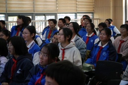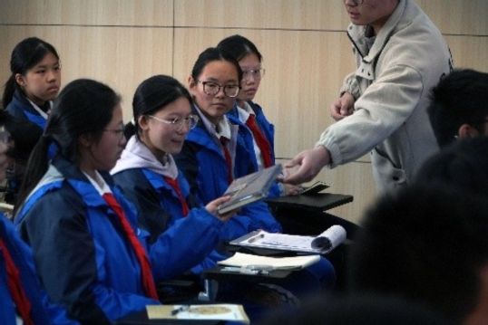 在輕松融洽的交流中,同學們暢談了對大學生活的想象——有人期待“輕松自由”,也有人預想“忙碌充實”。而當話題回到初中生活,大家普遍表示“學業任務重、考試頻率高”。面對學弟學妹的共鳴,張雨燦娓娓道來自己的大學經歷:從高效學習方法到可喜的成績收獲,從積極參與志愿服務到勇敢挑戰陌生領域。她用實際行動詮釋了“沒有天生的學霸,都是好習慣的厚積薄發”,也激勵著在場同學勇敢追夢。
