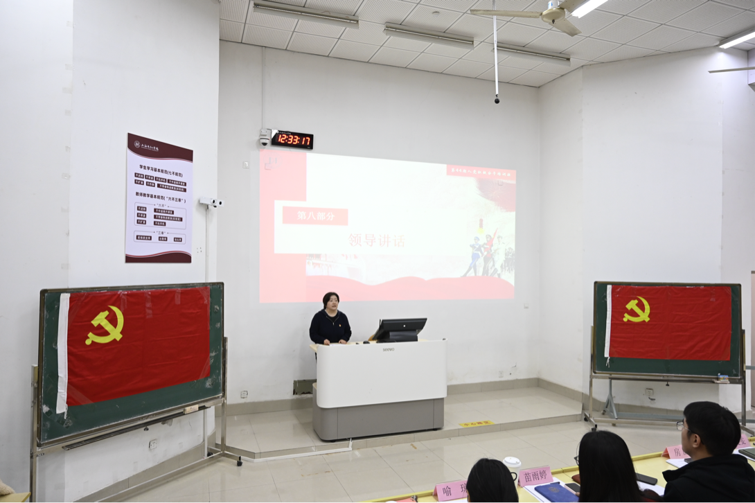 她首先對順利結業的全體學員表示祝賀,對辛勤付出的黨校授課教師與參與組織的師生表示感謝。她表示,這次培訓整體展現了學員們從“思想認同”到“行動自覺”的升華,達到了黨的理論內化于心、外化于行的效果,她以“三個堅持”寄語本期入黨積極分子的全體學員。一是堅持理論學習,筑牢信仰之基。入黨積極分子培訓班結業不是學習的終點,而是踐行初心使命的新起點,全體學員要持續深化理論學習,將培訓所學轉化為實際行動,成為政治上的“明白人”;二是堅持知行合一,彰顯先鋒本色。希望大家積極參加學校學院的各類社會實踐、志愿服務、科創競賽活動,多深入生活,了解社會,要主動亮身份、做表率,在急難險重任務中沖鋒在前,在服務同學中傾注真情,在創新發展中敢于突破;三是堅持自我革命,永葆清正本色。要時刻警惕學生干部隊伍中的官僚作風,在工作中、面對誘惑時多問一句“是否符合黨員標準”,面對困難時多想一步“如何體現擔當”,面對群眾時要優先考慮“是否維護了群眾的利益”,只有經得起各方的考驗,才能贏得組織信任和群眾擁護。展望未來,她希望全體入黨積極分子在崗位上爭做“排頭兵”,用初心證明價值;在服務中爭做“領頭羊”,用行動溫暖身邊人;在實踐中爭做“先行者”,用信念鑄就信仰。堅定不移聽黨話、跟黨走,心懷理想、勇擔重任,吃苦耐勞、砥礪奮斗,將個人發展同建設具有航空航天特色的全面示范應用技術大學的學校發展目標結合起來,敢想敢為又善作善成,用堅定的信念鑄就紅色信仰,讓自身價值與組織需要同頻共振,做到未進黨的門、先做黨的人。