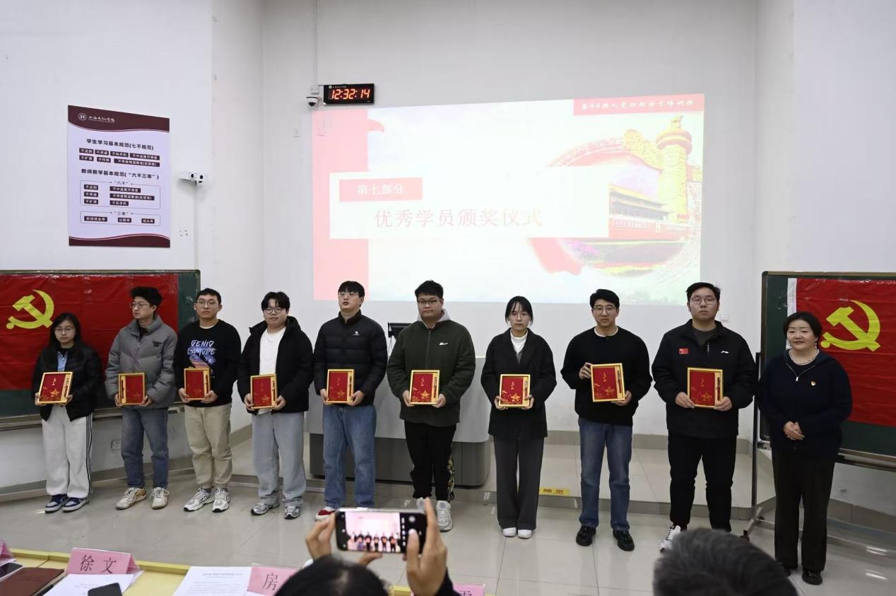 隨后,學院專職組織員馮雯雯老師代表學院分黨校對本期培訓班的結業情況進行全面介紹并宣布優秀學員名單,她表示本期黨校全體學員都展現出了極高的學習熱情與良好的紀律素養,無論是理論課堂上的積極互動,還是實踐活動中的主動擔當,都充分彰顯了入黨積極分子的優良風貌。經綜合評定,162名學員順利結業,并評選出電25606邢俊昊、昂電2411涂宇翔在內的18名同學為優秀學員。